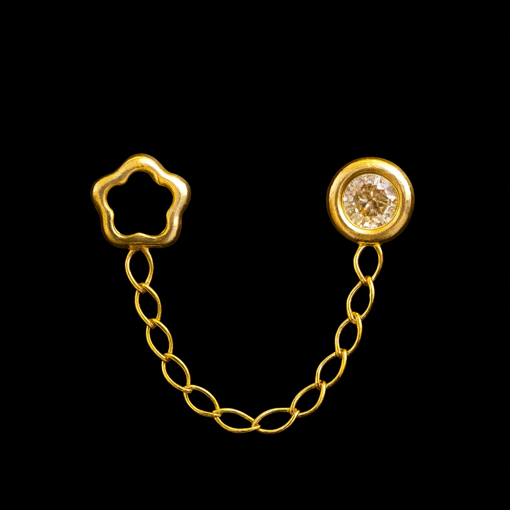 Conjunto de broqueles de oro 10k de cadena con zirconia y estrella.