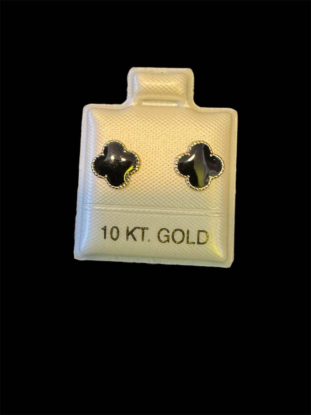 Conjunto de broqueles de trébol negro en oro fino 10k