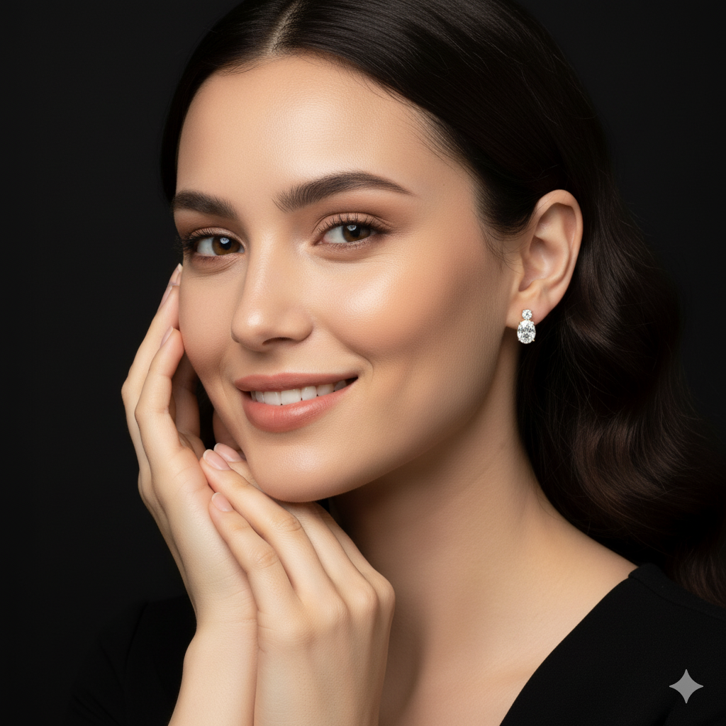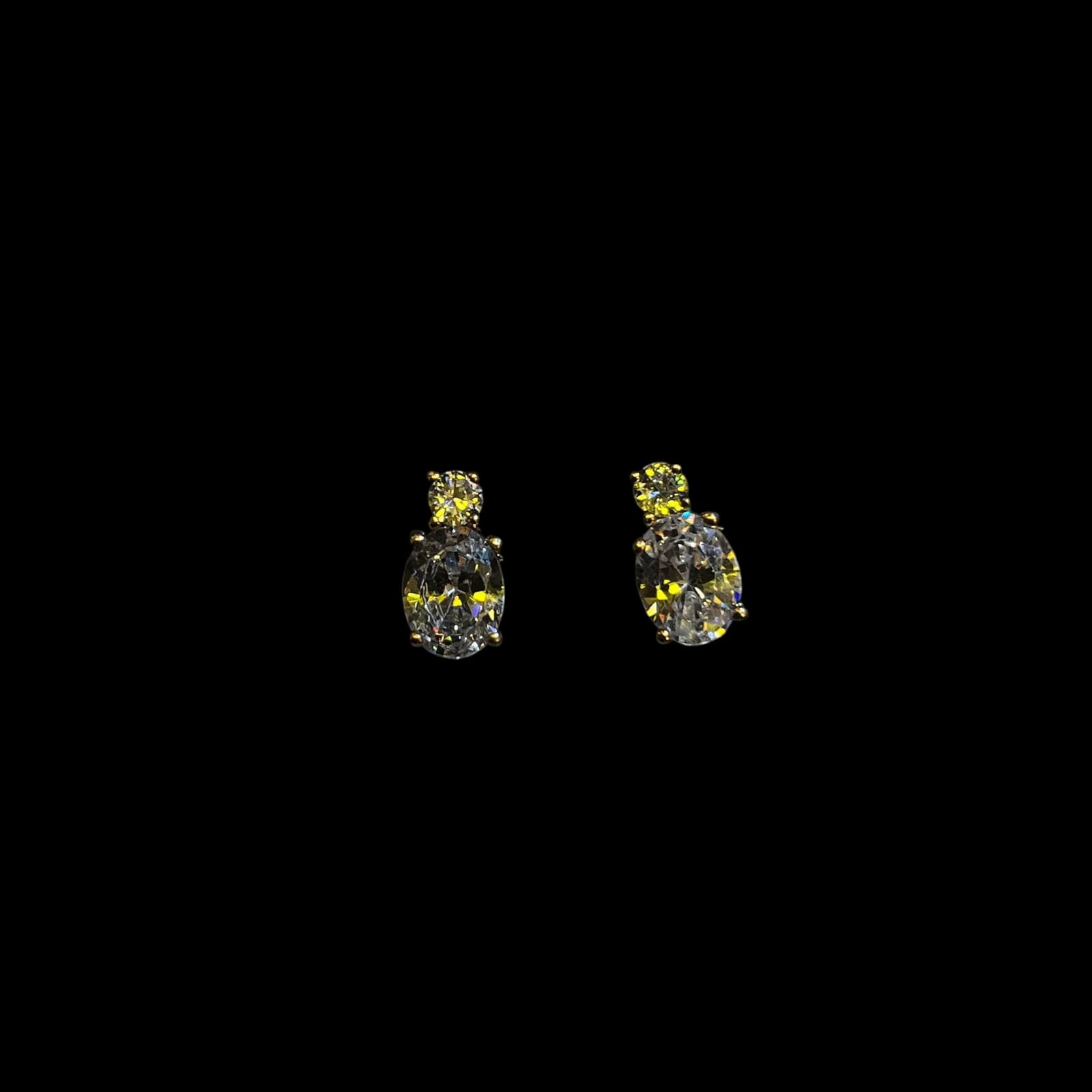 Broqueles Piedra Doble Zirconia Blanca 14K