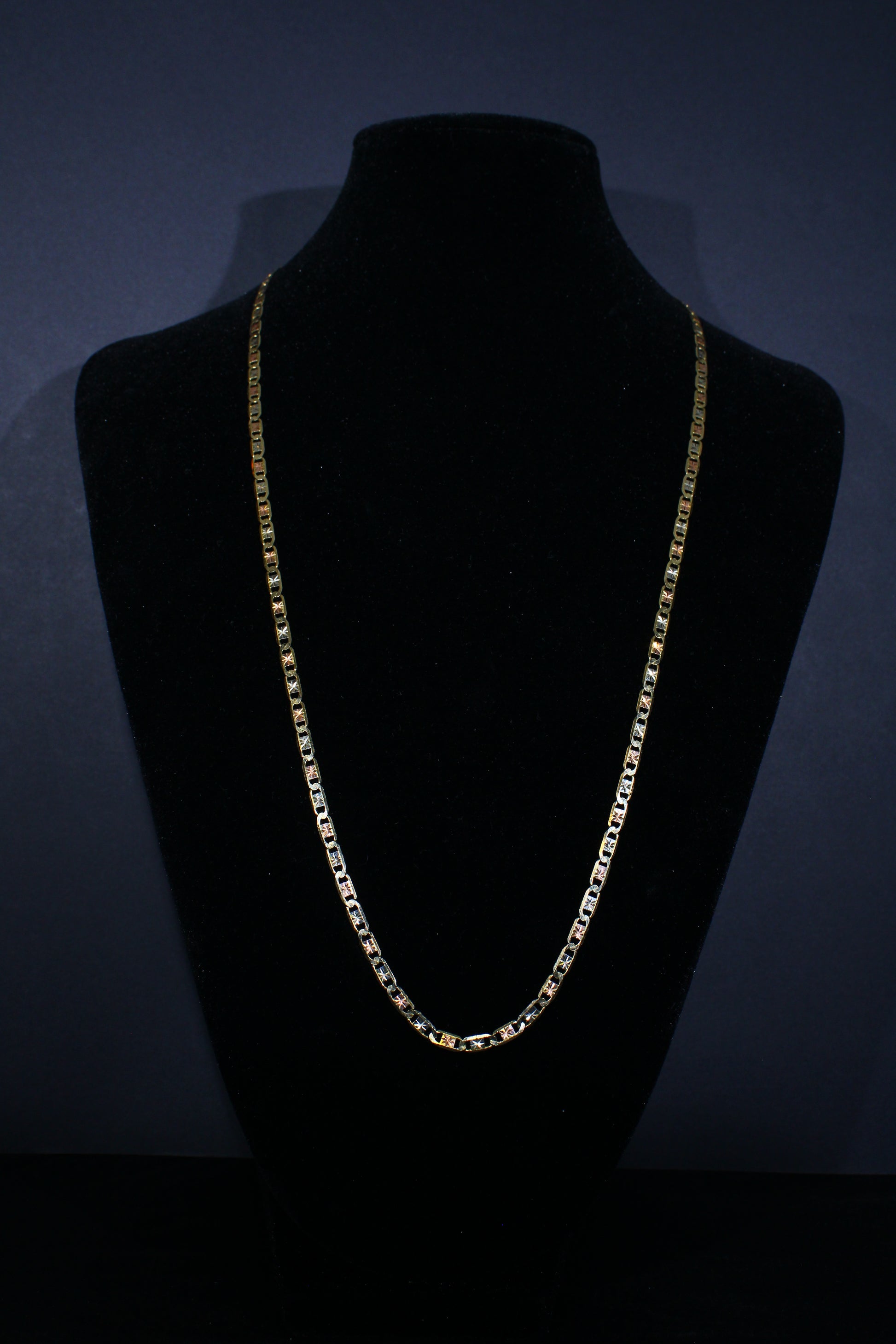 Hermosa cadena tejido estilo G espiral 3 Oros 10k